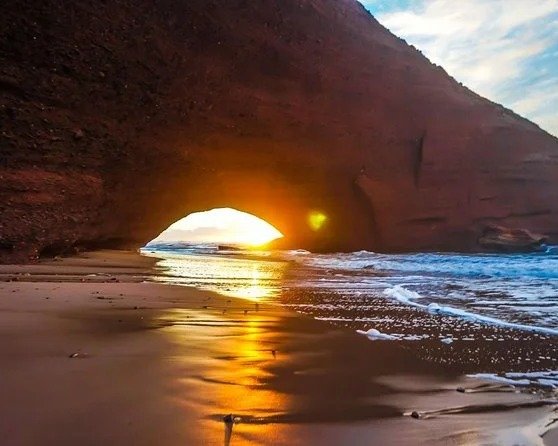 La journée commence par une prise en charge matinale à votre hôtel à Agadir et se dirige le long de la côte marocaine, en s'arrêtant sur les plages d'Aglou et de Mirleft en cours de route. À votre arrivée à Legzira, admirez ses magnifiques paysages et ses incroyables formations rocheuses, sculptées par les éléments naturels que sont l'eau, le vent et la terre.