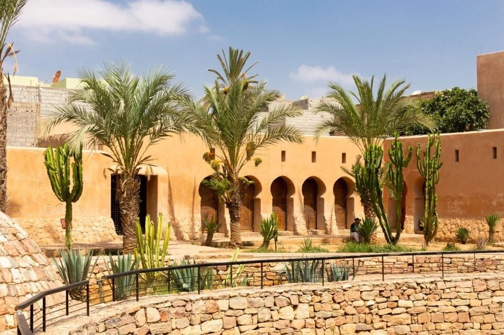 Explorez cette magnifique plage sauvage en vous promenant le long du rivage et émerveillez-vous devant la puissance de la nature. Déjeunez ensuite dans un restaurant en bord de mer et savourez les saveurs de la région avec du poisson grillé local ou un authentique tajine marocain. Après le déjeuner, visitez la médina historique de Tiznit, célèbre pour ses remparts et ses forts. La ville est un centre commercial pour les commerçants locaux et une capitale de la joaillerie berbère grâce à son grand marché d'argent et de bijoux. Prenez le temps d'explorer la ville et son marché avant de rentrer à Agadir.