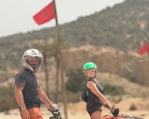 Votre aventure commence par une prise en charge pratique à votre hôtel, pour une expérience passionnante et sécurisée comprenant une balade d'une heure en quad et une balade d'une heure à dos de chameau le long de la plage. Les participants recevront l'équipement de protection nécessaire avant de partir. L'excursion traverse les magnifiques dunes de sable doré et s'étend sur six kilomètres de plage de sable immaculée de la baie de Tamraght, située au pied des montagnes de l'Atlantique. L'itinéraire se poursuit vers Taghazout, une destination réputée pour sa culture du surf. Le terrain varié offre des conditions idéales pour la pratique du quad, promettant aux participants une expérience palpitante et mémorable.