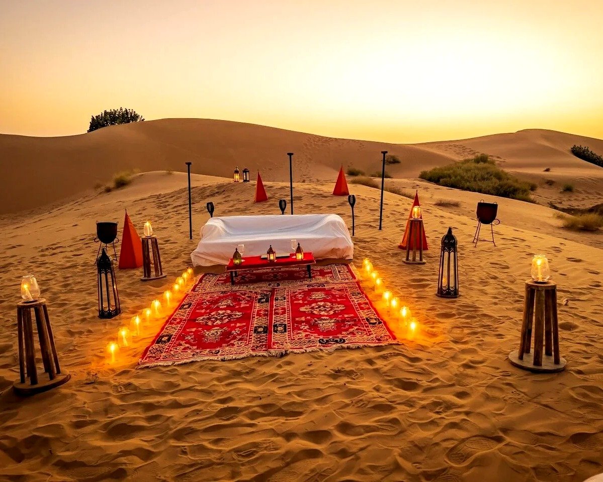 Alors que la journée touche à sa fin, rassemblez-vous autour d'un petit feu. Écoutez de la musique traditionnelle marocaine et savourez un délicieux dîner marocain. Après le dîner, participez à une danse animée au rythme des rythmes marocains.