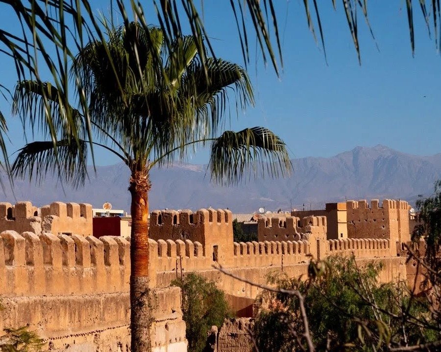 Du sommet, admirez la vue imprenable sur le Haut Atlas et la vallée du Souss. À noter : Fernandel a joué dans Ali Baba et les 40 voleurs, tourné dans cette palmeraie en 1954.
