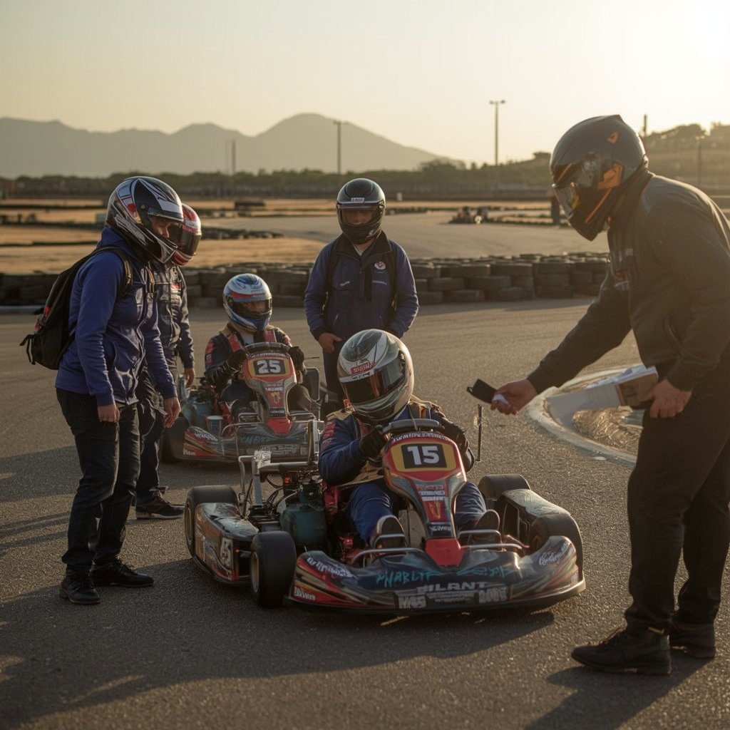 Before racing, everyone receives a safety briefing. Helmets, gloves, and suits are usually provided.