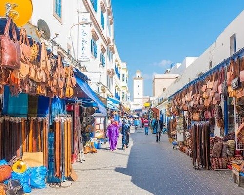 This trip's destination is ultimately the medina (old, walled city) of Essaouira, a city offering views of charming colorful landscapes in Moroccan and Portuguese style. See the Grand Mosque, terraces, cafés, and the souk (the market). This old Portuguese city was listed as a UNESCO World Heritage Site in Morocco in 2001! Once you arrive in Essaouira, you'll have free time to visit the souk located inside the medina. Then, take a tour of the ramparts of the Scala of the Kasbah (an ancient fortification), the port of Essaouira, the municipal market, and the neighbourhood jewelers and craft complex. Stores along the streets will be selling a massive variety of beautiful handcrafted items, such as Thuya wood products, clothes, carpets, and more.