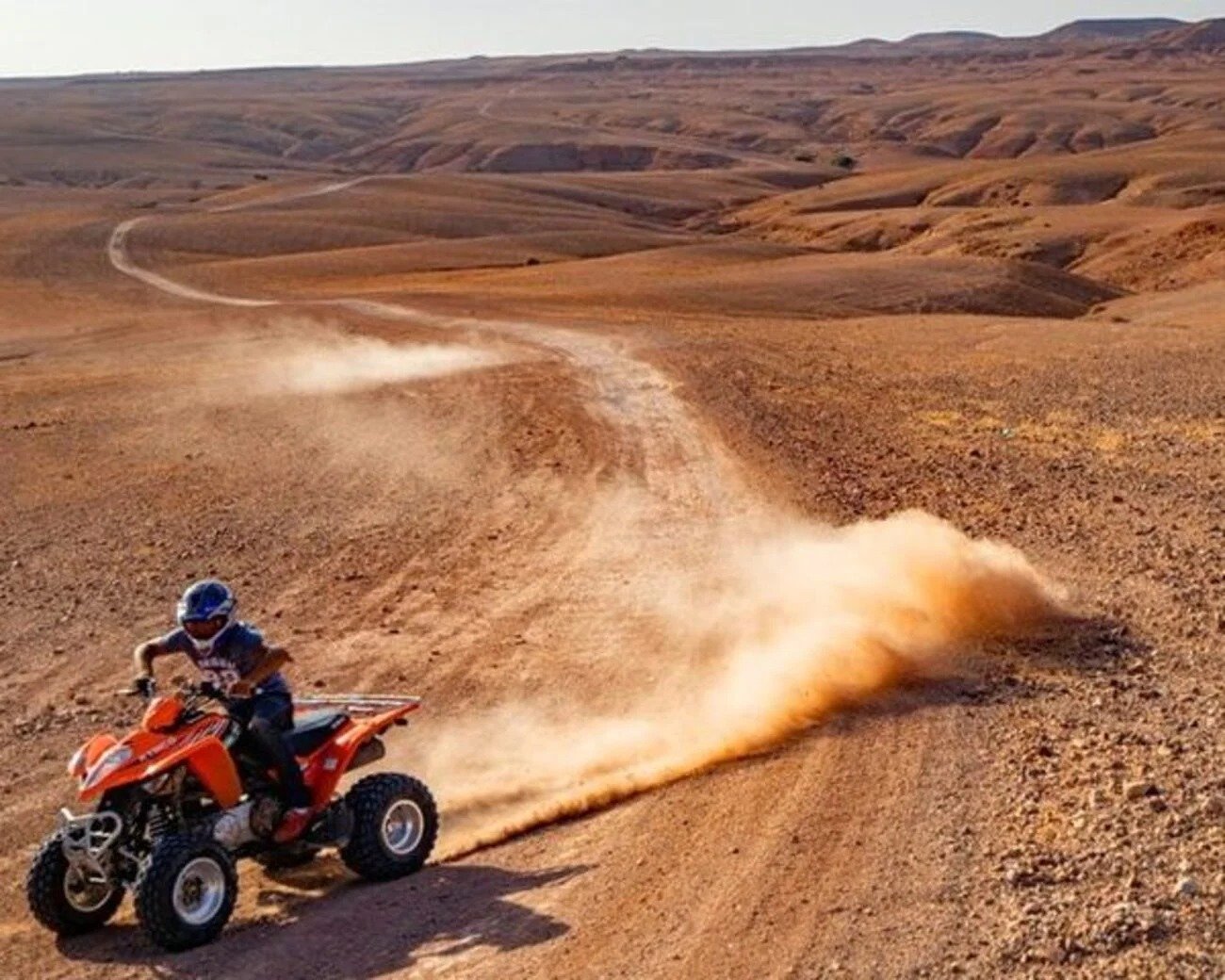 Une fois sur place, vous recevrez votre équipement de sécurité ainsi qu’un briefing d’initiation avant de partir pour une balade guidée en quad à travers les pistes désertiques, les lits de rivières asséchés et les pittoresques villages berbères des environs d’Agadir. Cette excursion offre un savoureux mélange de vitesse, sensations fortes et découvertes, tout en profitant de vues panoramiques sur les paysages arides uniques du sud marocain.