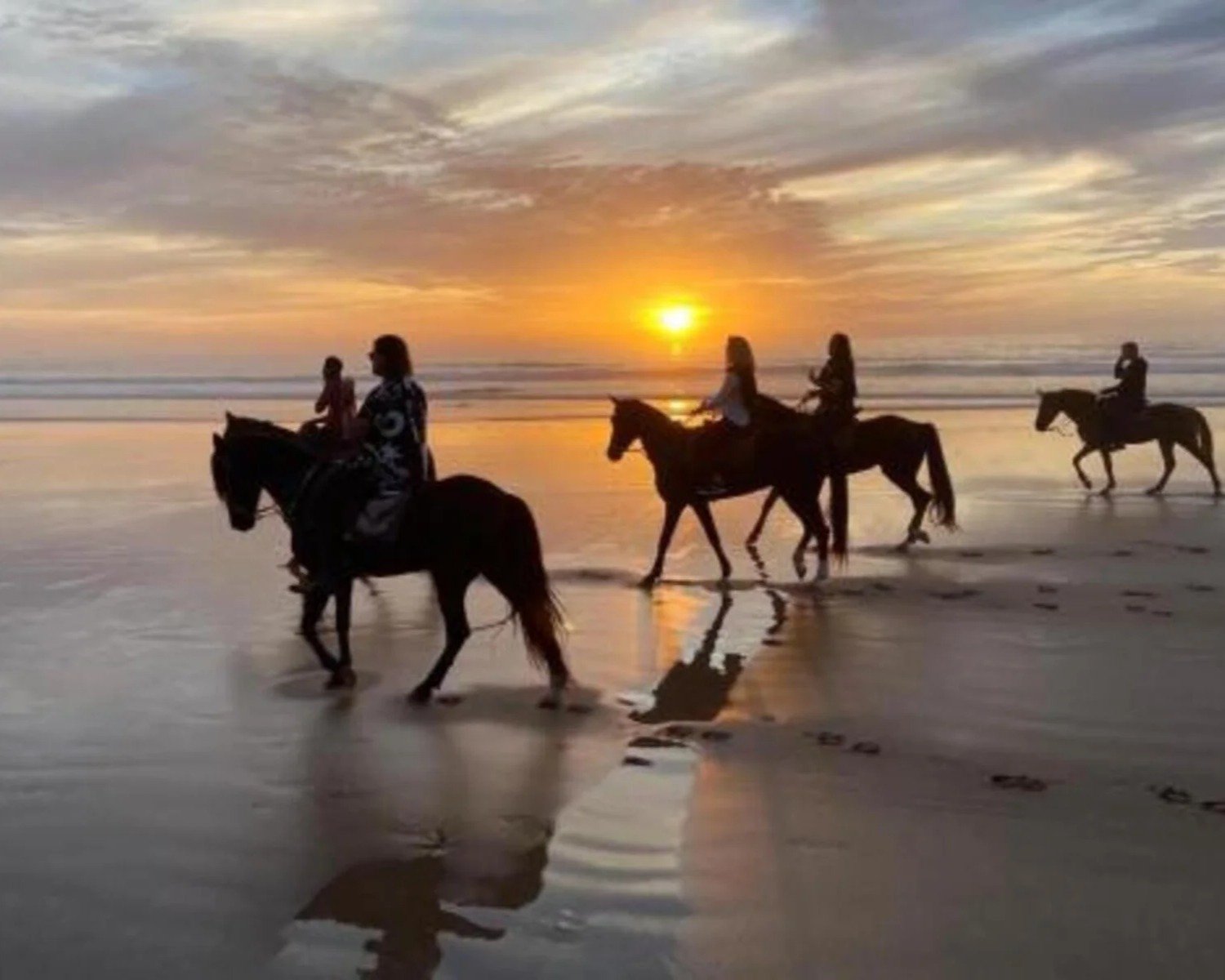 Your adventure begins with a hotel pickup and a short drive north along the coast, where golden beaches and scenic landscapes await. Start the experience with a guided horse ride along Agadir’s sandy coastline or through the tranquil trails near the Tamraght River. Whether you’re a beginner or an experienced rider, friendly guides will ensure a safe and enjoyable journey. As you ride, soak in panoramic views of the Atlantic Ocean, watch the waves crash on the shore, and capture unforgettable photos.