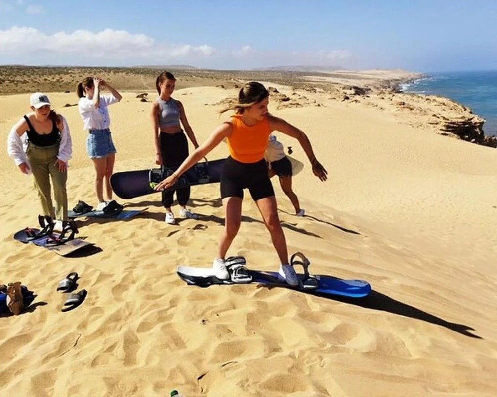 Next, continue to the Tamri dunes, a natural paradise known for its soft golden sand and coastal breeze — the ideal spot for sandboarding. After a short demonstration, grab your board and glide down the dunes, laughing and enjoying the thrill of this fun desert-style activity by the sea.